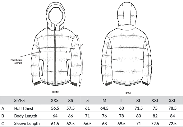 Set-in sleeve. 1x1 rib at sleeve cuff. Elastic bottom hem. Lined hood with adjustable plastic stoppers and elastic cords on inside. Nylon zip at centre front with chin guard. Zipped welt pockets with extra grosgrain tape. Self-fabric half-moon at back neck. Inside zipped chest pocket. Grosgrain straps on inside for versatile and hands-free carrying. Inside zip opening at bottom hem and wearer’s left chest for easy decoration. OEKO-TEX® certified. Fairwear certified. Global Recycled Standard certified. Vegan certified.